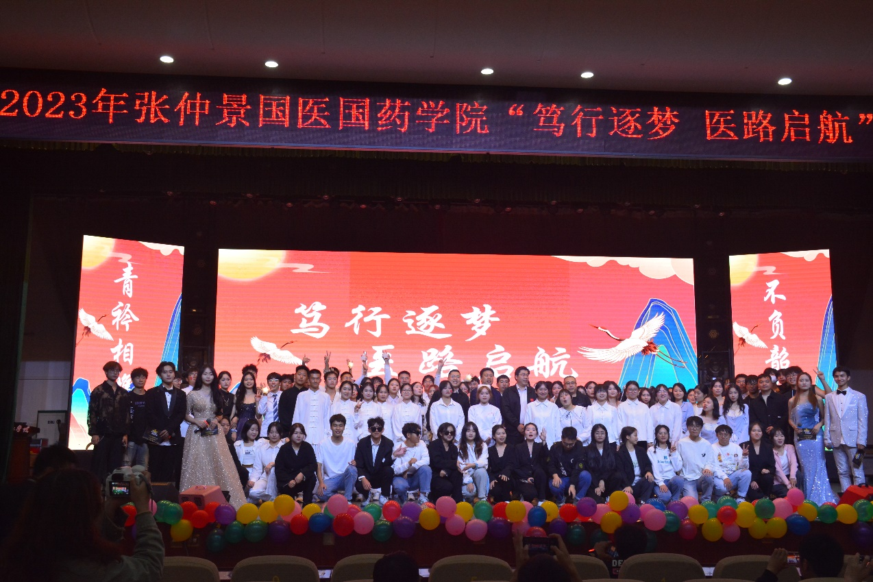 本网讯(特约记者/夏红梅 通讯员/宋法新)流光溢彩迎新夜,心心连新齐飞扬。为迎接2023级新生,10月30日晚,“笃行逐梦 医路启航”张仲景国医国药学院2023年迎新晚会在西北校区毕业大厅隆重举行。学院领导班子、教师代表、全体辅导员以及2023级新生参加了本次晚会。
