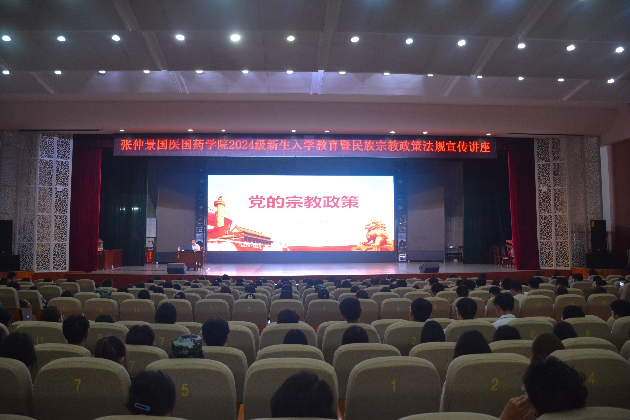 本网讯(特约记者/刘征 学生记者/蓬建青)为加强学生思想政治教育,引导大家树立正确的宗教观意识,我院于9月12日晚上19:30在西北校区毕业大厅举办了2024级新生起航教育(三)民族宗教政策法规宣传讲座,党委统战部主任路瑞峰主讲。