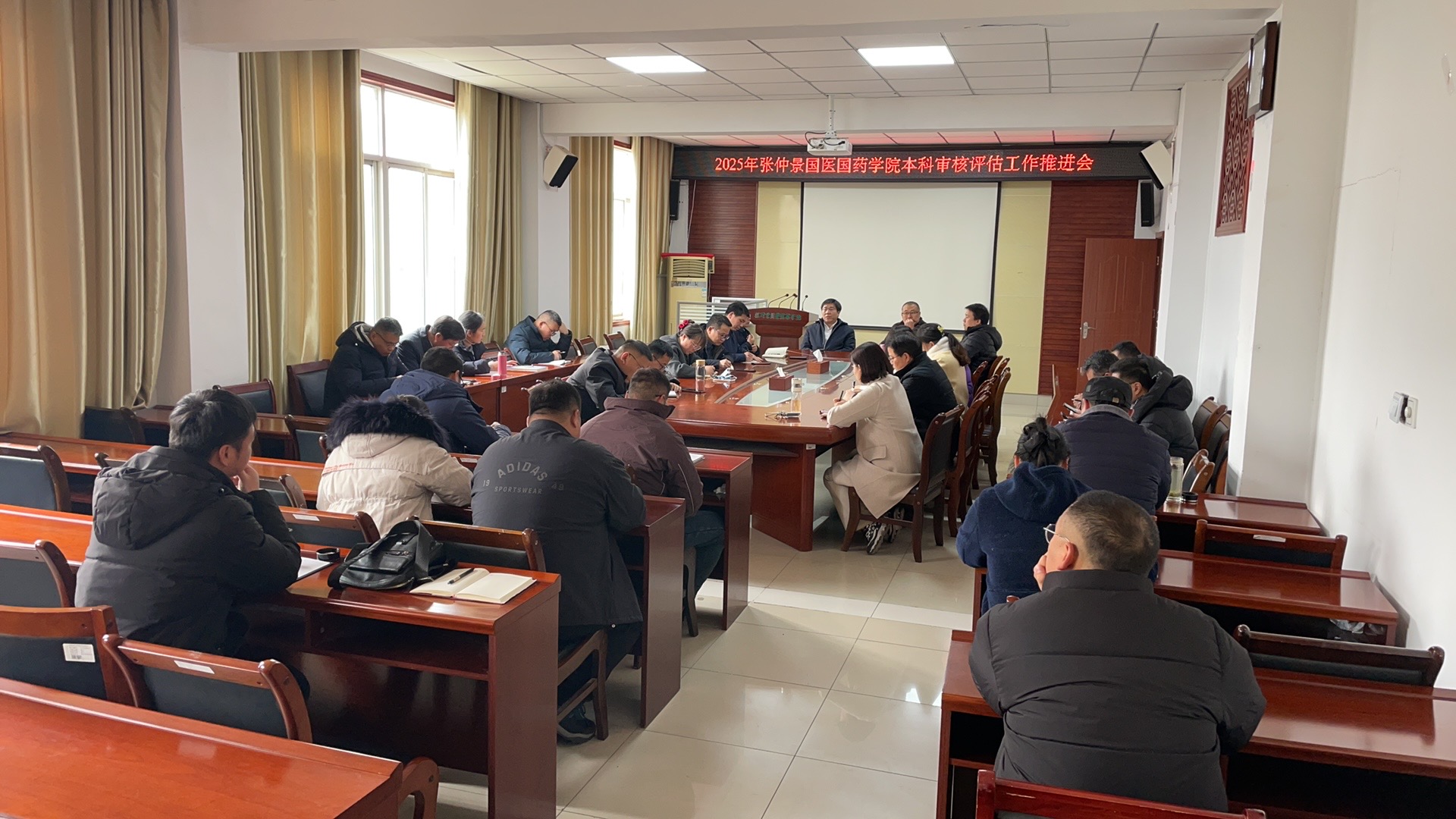 为深入贯彻落实教育部关于新一轮本科教育教学审核评估工作的部署要求,全面推进学院迎评促建工作高质量发展,张仲景国医国药学院于近日召开本科教育教学审核评估工作推进会。学院领导班子全体成员、教研室主任、教学督导组代表及教师骨干参加会议。会议由党委书记段焰主持,院长卞华作动员讲话,对审核评估重点工作进行部署。