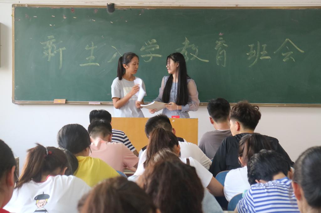 本网讯(特约记者/王同斌 学生记者/黄万里)9月8日,我院组织2019级新生在系楼开展新生入学班会,由各班级班代负责主持班会。
