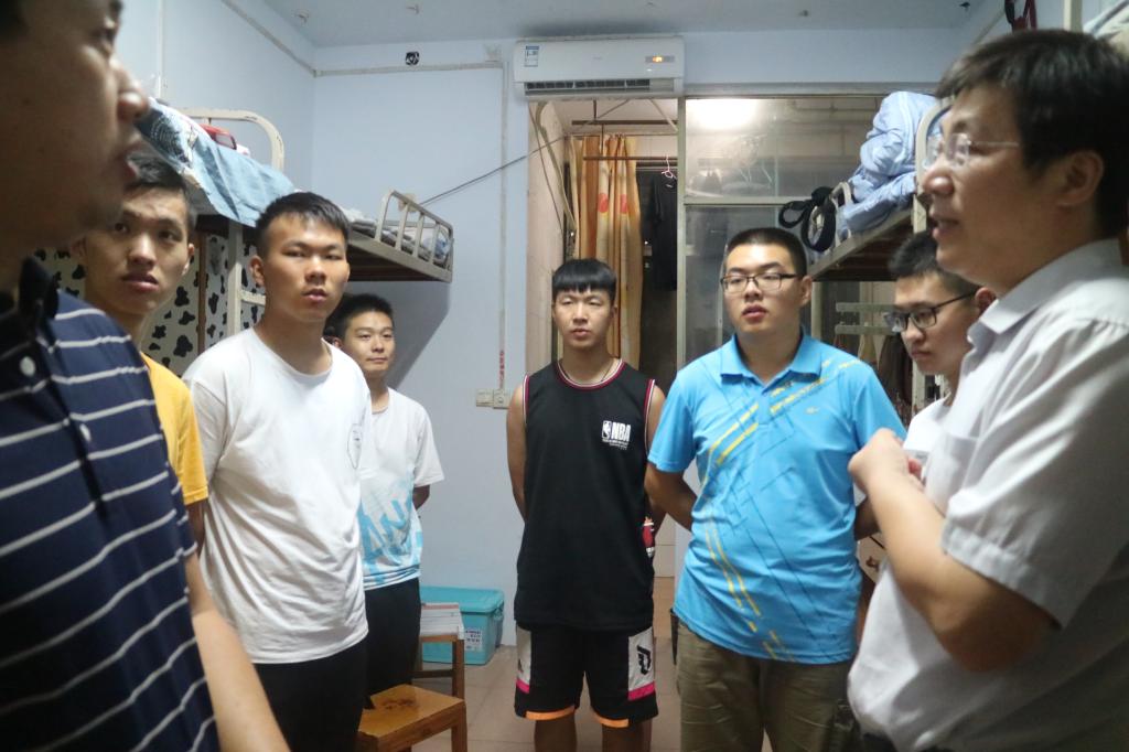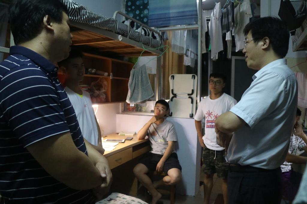 本网讯(特约记者/王同斌 学生记者/黄万里)9月8日晚上8点,为深入了解学院新生学习生活的情况,正值全体新生报道完毕之际,我院院长卞华、党委副书记岳伟国、全体辅导员在学生会相关负责人的陪同下到13号学生公寓、18号学生公寓深入学生宿舍,看望慰问2019级新生。
