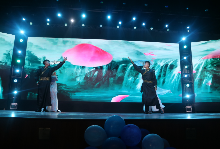 晚会在激情澎湃的开场舞中拉开序幕,帅气的舞姿瞬间点燃现场气氛。整场晚会节目丰富,高潮迭起,不仅有舞蹈、小品,更有舞台剧、朗诵等精彩节目,为现场观众带来了一场视听盛宴。根据动画《白蛇缘起》改编而来的古典舞《缘起》清新脱俗的音乐与柔美曼妙的舞姿完美结合,让观众感受到其舞蹈之妙、音乐之美;小品《看病》通过诙谐幽默的语言和搞笑的故事情节,告诫大学生应当拒绝盲目追剧,自觉抵御网络游戏的侵害;说唱《飘向北方》男女二重唱相互交叠而又相互区别,阳刚之气与柔美之音纵横交错,高超的rap功底和流行唱法将晚会推向高潮;朗诵《祖国,我们为您骄傲》节奏轻重缓急、抑扬顿挫,以祖国70周年来的艰辛历程和光辉事迹,展现祖国七十载翻天覆地的变化,观众内心无与伦比的自豪感油然而生;拉丁舞《红与黑》精湛的舞步、欢快动感的舞姿,让现场观众叹为观止;最后,晚会在一曲庄重深情的大合唱《我和我的祖国》中缓缓落下帷幕。