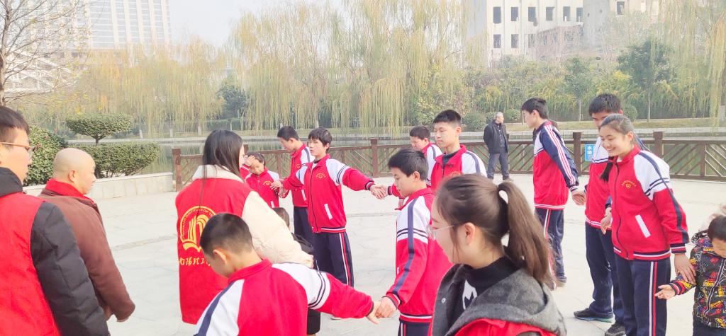 活动开始时,志愿者带领孩子们去往公园进行活动锻炼,一路上,志愿者与孩子们一起话家常,聊天谈心,倾听他们的故事并且为他们唱歌,使路途上充满了欢声笑语。到达公园后,武术教练王老师组织孩子们练习打拳。相互学习,互教动作能看出他们的互助互爱;认真练习,严肃对待体现出他们的刻苦勤奋。孩子们脸上洋溢出属于他们的童真笑容。从校长口中了解到,特教学校的老师们全都免费地教孩子们学习,这群孩子虽然有视力障碍,但他们并不为此感到自卑,反而相比同龄人他们更加乐于汲取知识,对这个世界充满了渴求。诚然,他们和普通人一样,拥有自己的性格特点、自己的思想以及对世界的认知。活动最后,志愿者将孩子们带回学校,并与他们告别。于不舍中,志愿者离开特教学校,本次活动在温情中圆满结束。