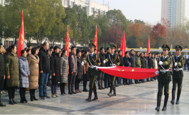 紧接着,由学生代表发言,他从中提到了吾辈如何在历史长河中激流勇进,同时阐述了当代大学生如何爱国以做到自立自强。现场气氛庄严肃穆,国旗护卫队高举国旗正步入场,全体师生面对国旗郑重宣誓。声声誓词,饱含师生们此生无悔入华夏的深沉情感;铿锵字句,体现出他们爱国的坚定信念!伴随着朗朗诵读声,纪念国家公祭日活动圆满结束!