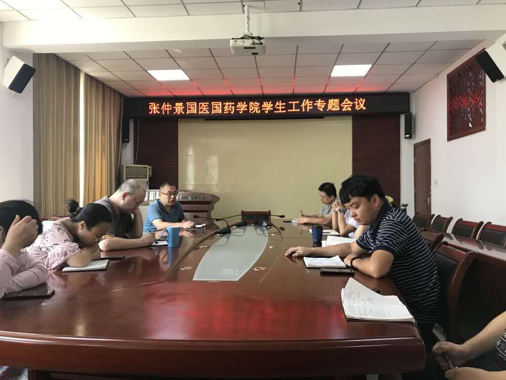 2020年9月4日,我院在11号教学楼211会议室召开“张仲景国医国药学院学生工作专题会议”,传达上级会议精神,安排秋期学生相关工作。国医学院党委书记段焰、党委副书记岳伟国出席会议,全体学生工作人员参加会议。
