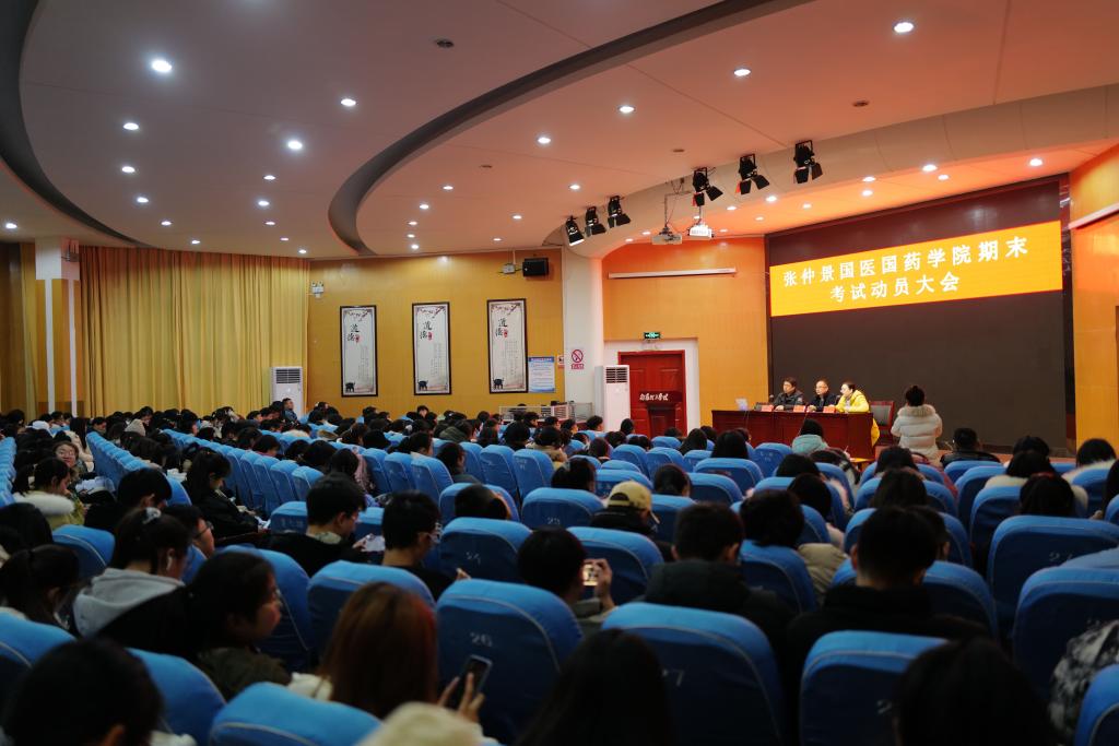 本网讯(特约记者/刘征 通讯员/牛晨慧)为严肃考风考纪,督促学生认真对待考试。12月20日,张仲景国医国药学院于领创空间二楼报告厅举办期末考试动员会。我院党委副书记岳伟国、副院长胡久略、副院长陈丽平出席本次会议,20级全体学生参加。本次大会由岳伟国主持。