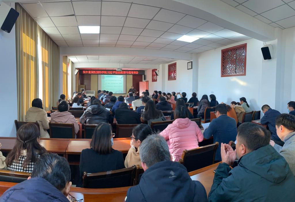本网讯(特约记者/夏红梅 通讯员/牛晨慧)为让我院教职工全面系统、深入浅出地明晰习近平法治思想的核心要义和丰富内涵,帮助其树牢法治思维,强化法治意识。11月9日,张仲景国医国药学院于11#211会议室举办习近平法治思想专题培训会。我院院长卞华、党委书记段焰等领导班子成员及全体教职工参加了本次培训会,赵青东担任本次培训会主讲人。