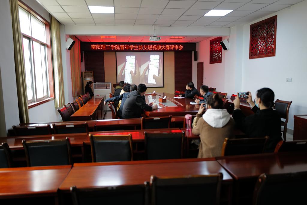 本网讯(特约记者/刘征 通讯员/牛晨慧)在世界艾滋病日即将到来之际,为增强青年学生防艾意识,促进其积极参与防艾事业,我校举办了“美好青春我做主,抗艾防艾同行动” 青年学生防艾短视频大赛,面向我校所有学生,以短视频比赛的形式鼓励学生亲身参与创作,积极响应“防艾没有旁观者,人人都是参与者”的号召,展现学生自身知艾防艾风采。本次活动由校学生处主办,张仲景国医国药学院、传媒学院承办。截止11月8日,本次大赛共计收到来自13个学院的39部作品,11月11日,特邀请相关领导老师在11#211会议室对本次大赛的作品进行逐一评选。学生处副处长田永磊、传媒学院副书记张金梁、张仲景国医国药学院副书记岳伟国、分团委书记王猛等相关学院辅导员担任本次活动评委。