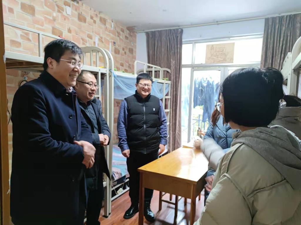 卞华一行来到学生所住的公寓,详细了解大家的学习生活情况,并向留校过春节的学生和他们的家人致以节日的诚挚问候和新春的良好祝愿。卞华讲,希望同学们都能利用这段时间静心思考、总结复盘,为新征程做准备。段焰表示,同学们虽不能与家人团聚,但是要保持与家人、亲友、老师的密切联系,有需求、有难处,及时主动提出,学院及学校将竭力为同学们提供帮助,同时大家也要注意安全、互相关心、互帮互助。留校学生纷纷表示,寒假期间学校及学院完善的生活保障和浓厚的年味暖意,让大家感受到了传统年味和特色南工温暖。留校学生纷纷表示,虽然不能回家过年,但真切感受到了学院和老师们对自己的关心关爱,感受到了如家一般的温暖,也对前来走访的领导老师送上了美好的新年祝福。