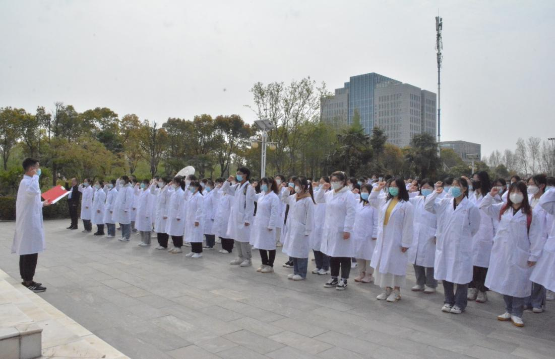 随后,由学生代表发言并带领全体师生宣读医学生誓词,庄重地向医圣张仲景塑像三鞠躬。