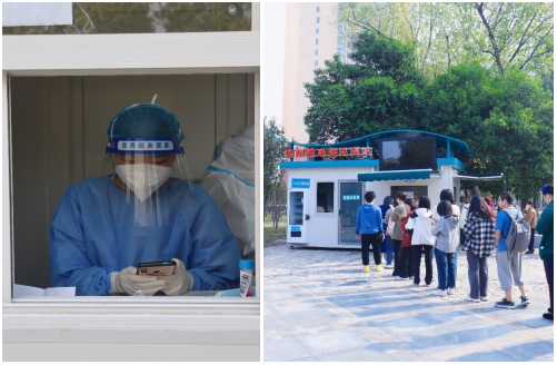 经过前期的线下培训,自10月24日开始,学生志愿者陆续走进核酸小屋参与到核酸采集工作当中。同学们每2人1组,一名负责信息录入,一名负责咽拭子采集。同学们现场采样、保存、手部消杀,按照标准流程进行操作,现场有条不紊,保证了核酸检测的正常进行。