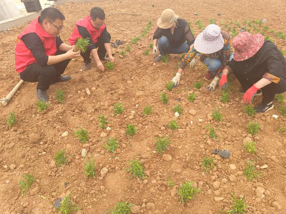 鸭河工区近期正在筹建中医药研学基地,其中百草园是研学基地的核心组成部分。科技特派员服务团深入田间地头,开展中药材种植服务和科技普及工作,现场指导瞿麦、连翘、金银花等中药的科学种植。