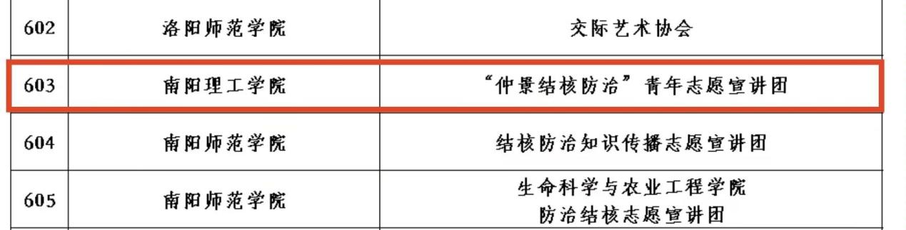 本网讯(特约记者/王旭 通讯员/王瑶琦)近日,国家疾病预防控制局传染病防控司、团中央青年志愿者行动指导中心联合发布了关于遴选2023年全国大学生“防治结核 志愿有我”志愿宣讲活动1000支志愿宣讲团的入选名单公告,我校张仲景国医国药学院“仲景结核防治”青年志愿宣讲团成功入选。