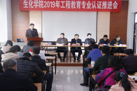 本网讯(特约记者/张梦 学生通讯员/叶丽靖裴真)3月12日,生化学院在2609教室召开2019年工程教育专业认证推进会。我校教务处处长高有堂,评估处处长梁秀山,生化学院领导班子及全体教职工参加此次会议。会议由生化学院副院长朱元良主持。