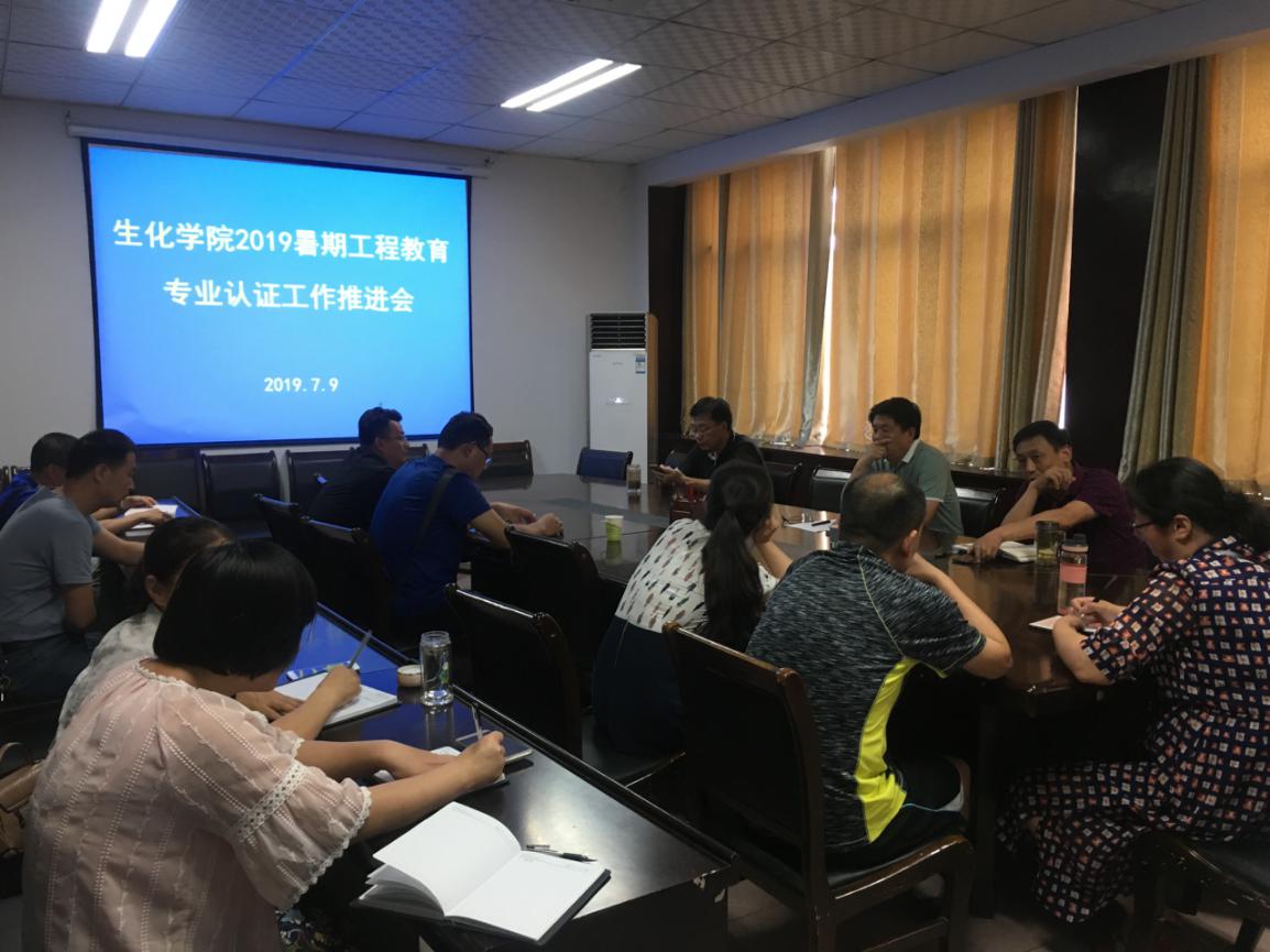 7月9日,生化学院于2219会议室举行2019暑期工程教育专业认证工作推进会,学院领导班子成员、各教研室主任、各专业认证小组秘书等人员参会。会议由罗建成副院长主持。