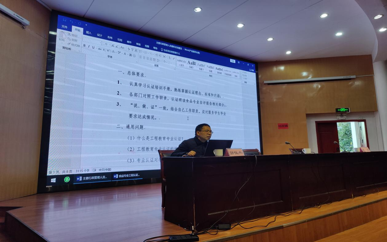 本网讯 (特约记者/王同斌 刘征)为进一步推进我校食品专业工程认证工作的深入开展,11月12日上午,我校在领创空间二楼报告厅举行了食品专业工程认证访谈培训会,副校长葛晨光出席会议,学校各职能部门负责人、公共课教师等相关人员参加了培训会。会议由张仲景国医国药学院党委书记段焰主持。