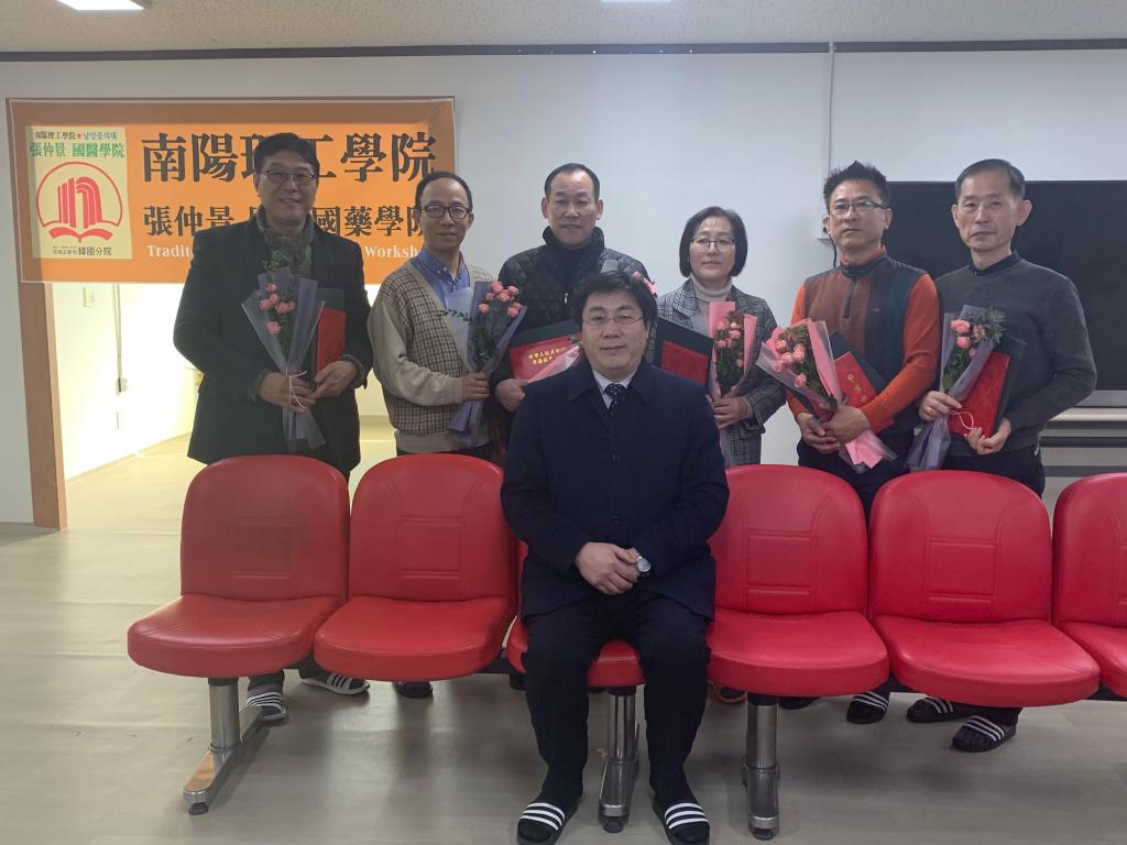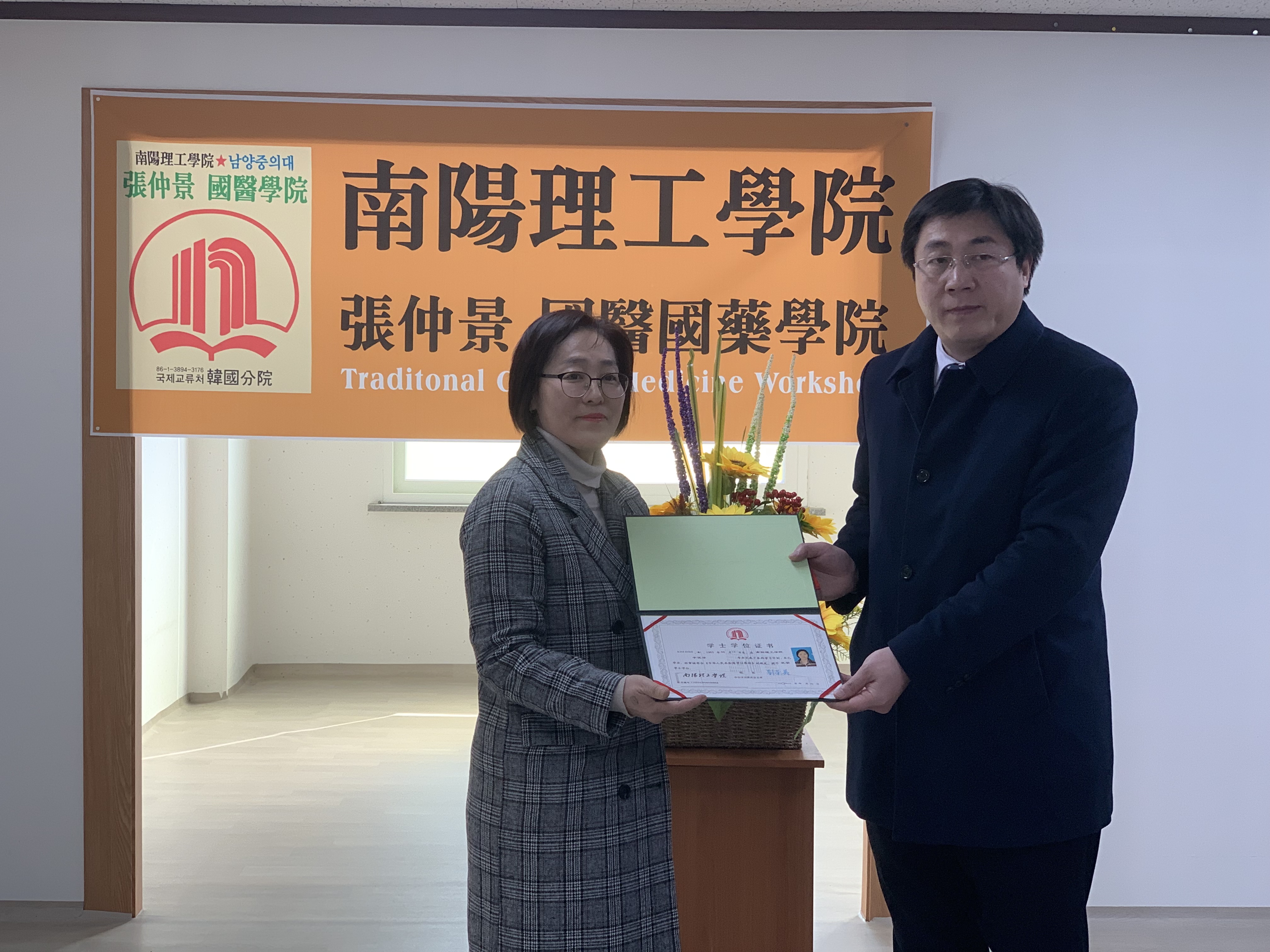 访问期间,卞华、郅琳、张瓅方和陈丽平老师按照安排为韩国学生讲授了中医基础理论、中医诊断学、方剂学、伤寒论、金匮要略等课程。虽然有一定的语言障碍,但每位学生都听得很认真,不时拿笔记下笔记,并积极参与课堂讨论,现场气氛十分活跃。课程结束后,由卞华代表南阳理工学院对韩国UNI学院达到毕业条件的七位2018级学生授予学士学位。
