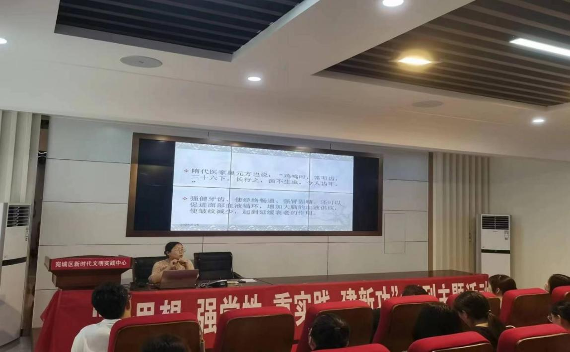 本网讯(特约记者/王旭)为进一步传承中医国粹,弘扬传统中医药文化,帮助广大居民群众养成良好的生活习惯,6月28日,南阳理工学院张仲景国医国药学院中医教研室老师前往南阳市宛城区新时代文明实践中心开展中医药文化知识科普文明实践志愿服务宣讲活动。