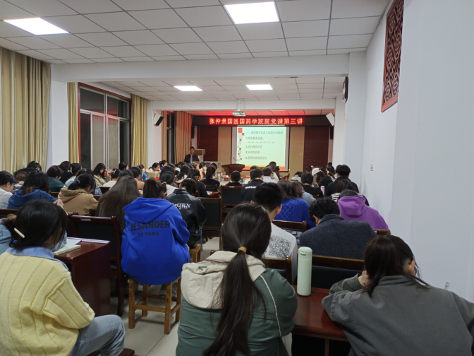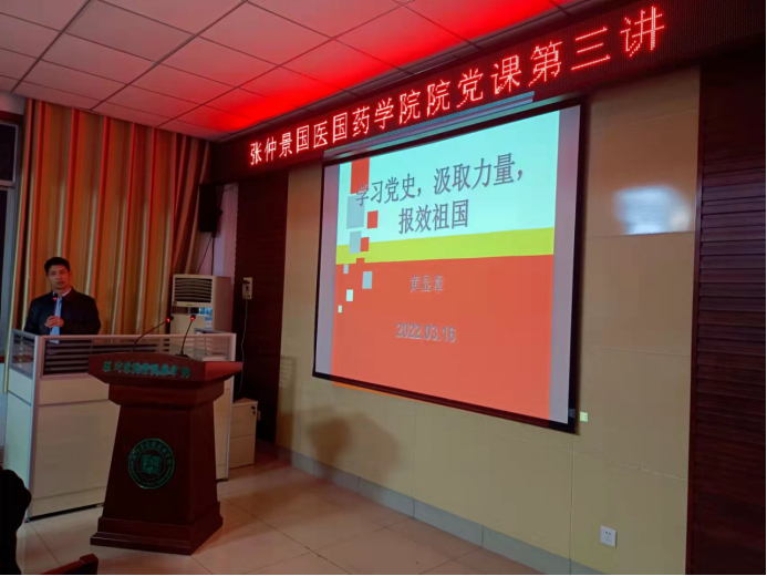 本网讯(学生记者/张依萌 刘雪晴)为使入党积极分子深入了解党史,细悟党史的同时并从中汲取奋进力量,报效祖国。3月26日,张仲景国医国药学院学院分党校入党积极分子培训班第三讲在学院211会议室举行。本次党课由河南省张仲景方药与免疫调节重点实验室副主任黄显章主讲。