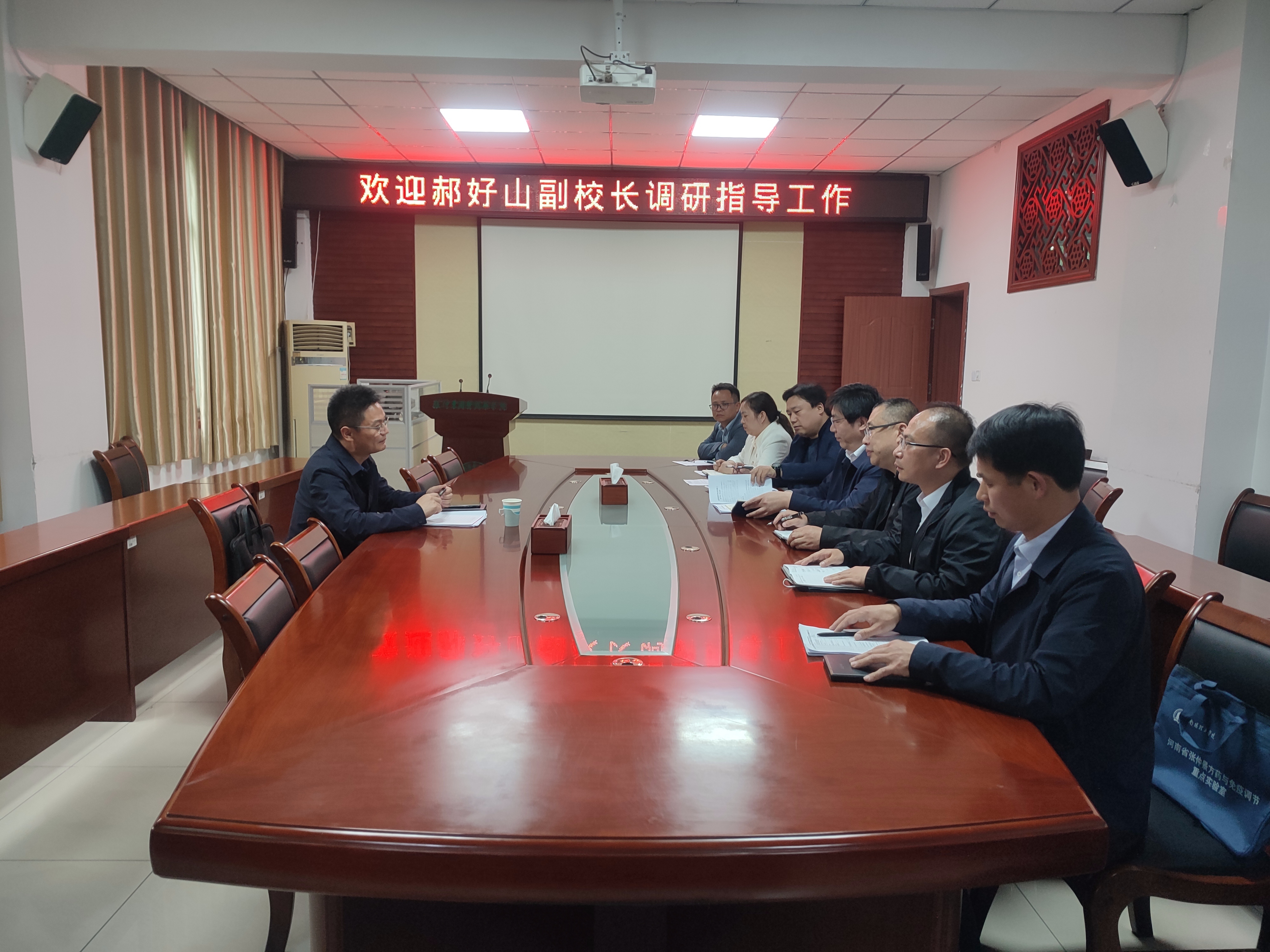 本网讯(特约记者/刘征)5月9日,副校长郝好山深入张仲景国医国药学院调研,全面了解学院发展、队伍建设和专业建设情况。学院班子成员参与调研活动。