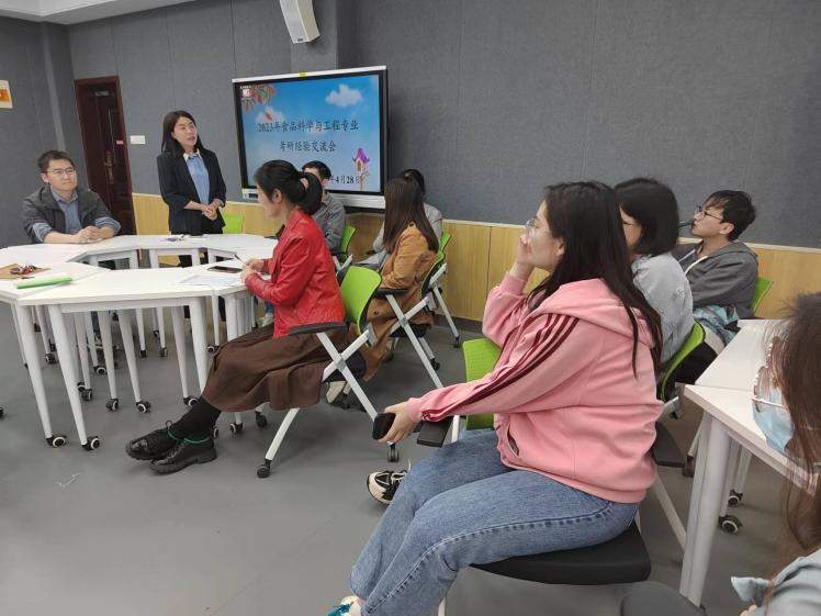 本网讯(特约记者/刘洋)为使我院食品科学与工程专业学子们对考研有更深入了解,帮助同学们树立正确奋斗目标,有效提升竞争力。4月28日下午,我院食品科学与工程专业在11#513智慧教室开展了“考研经验交流”活动,活动邀请教研室马艳莉主任及部分专业教师参会,2019级部分优秀考研代表刘雨杰、耿冰冰等七位同学分享交流。食品科学与工程专业20级、21级有考研意向的学生参会,活动由19级学业导师刘洋老师主持。