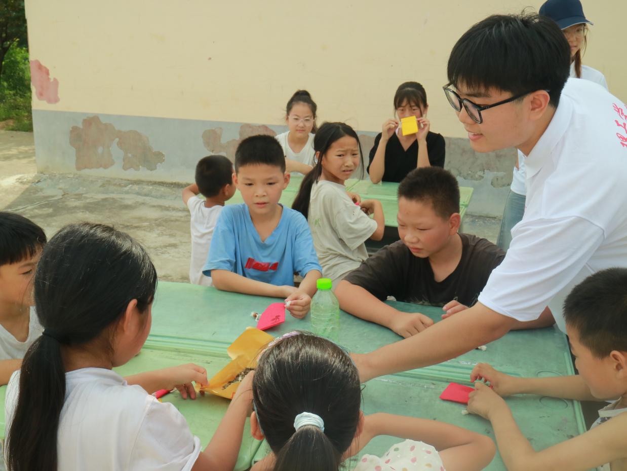 7月6日,南阳理工学院张仲景国医国药学院“一路溯光,医路同行”七彩假期社会实践服务队的12名大学生志愿者,正带着 当地留守儿童开展手工制作、体育游戏等活动,为这个偏远乡村的夏天注入了别样的温暖与活力。