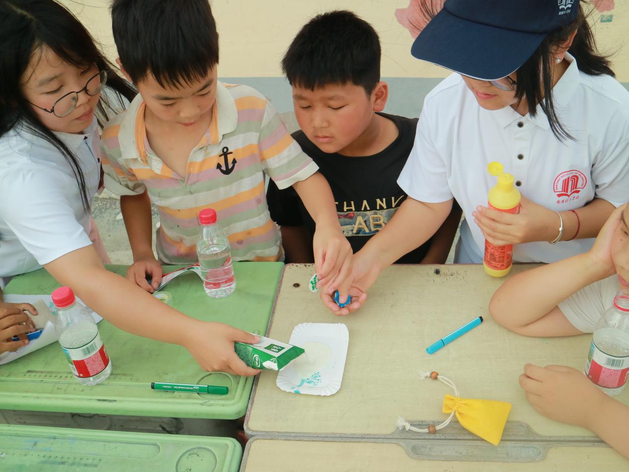 社会实践服务队精心设计了体育游戏、科学实验、手工制作等多样化活动,在玩乐中培养孩子们的团队协作与创造力。2023级护理学专业的李佳艺负责组织素质拓展,她发现,原本内向的孩子在团队游戏中逐渐变得主动,“有个小姑娘一开始总躲在后面,现在会主动给队友加油,还会出主意呢。”