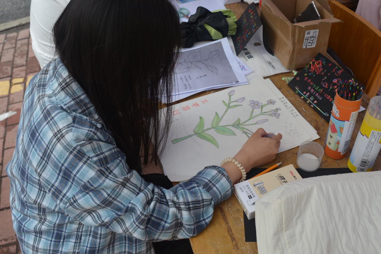 参加的同学在现场绘制中药图,以作品告别,以创作启程。本活动提供纸笔,还可以领取小礼品。毕业班的同学们踊跃参加,通过绘制中药图,以展现中药学的文化知识和中药之美,还为学弟学妹们树立了精神标杆,更为他们自身的大学生活留下完美的句号。