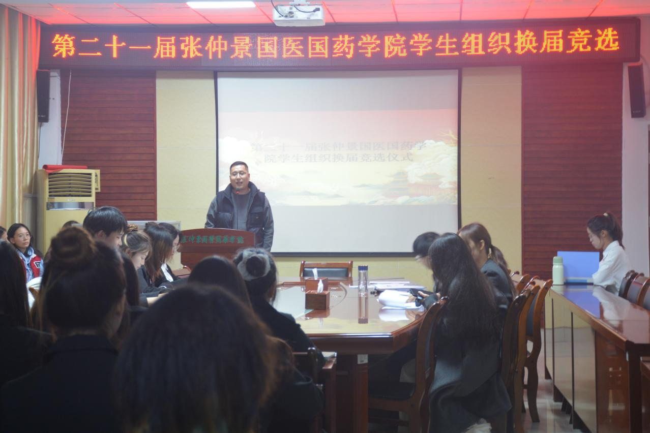 本网讯(特约记者/刘征通讯员/陈思佳)为选拔一批责任心强、能力突出的学生骨干,为学院学生工作注入新活力,张仲景国医国药学院于10月28日晚七点在11教211会议室举办了第二十一届学生组织换届竞选。本次竞选由王同斌老师出席,各部门部长候选人,各学生会主席候选人参与。
