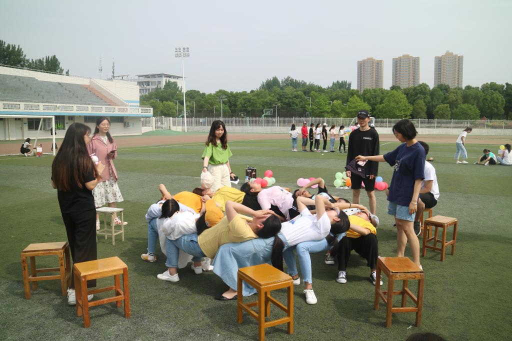 本次素质拓展活动包含了拖乒乓球、人椅、心有灵犀、你是我的眼、纸衣接力、众人打鼓等十多个有趣的游戏。活动伊始每个班级各自组队,参与活动的同学有序的进行各个游戏。其中最考验同学们团队合作能力及耐力的是人椅游戏,游戏规则为参加人员在凳子上同一方向坐好围成一个圆形,接着往后倒向背后的队友,上身凭借队友的力量保持原来姿势,板凳完全撤走开始计时,记录小队坚持时间,时间最长的获胜。经过激烈比拼,中药班以优异的成绩获得本次活动的第一名。