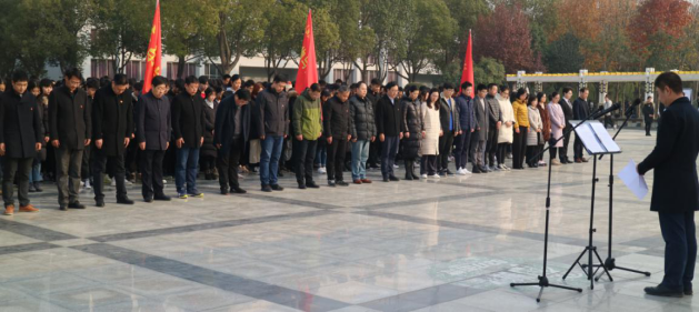 活动伊始,数百名师生衣整严肃,奏唱国歌。在老师的带领下,全体默哀追思一分钟,这不仅是对遇难同胞的哀悼,亦是警醒在场师生勿忘国耻,奋发图强!“忘记历史,就是对国家的背叛”,这是副校长肖泽昌致辞中的一句话。诚然,一个国家的历史是该国发展前进的基石,是一个民族的根本,以史为鉴,方可知兴衰更替。