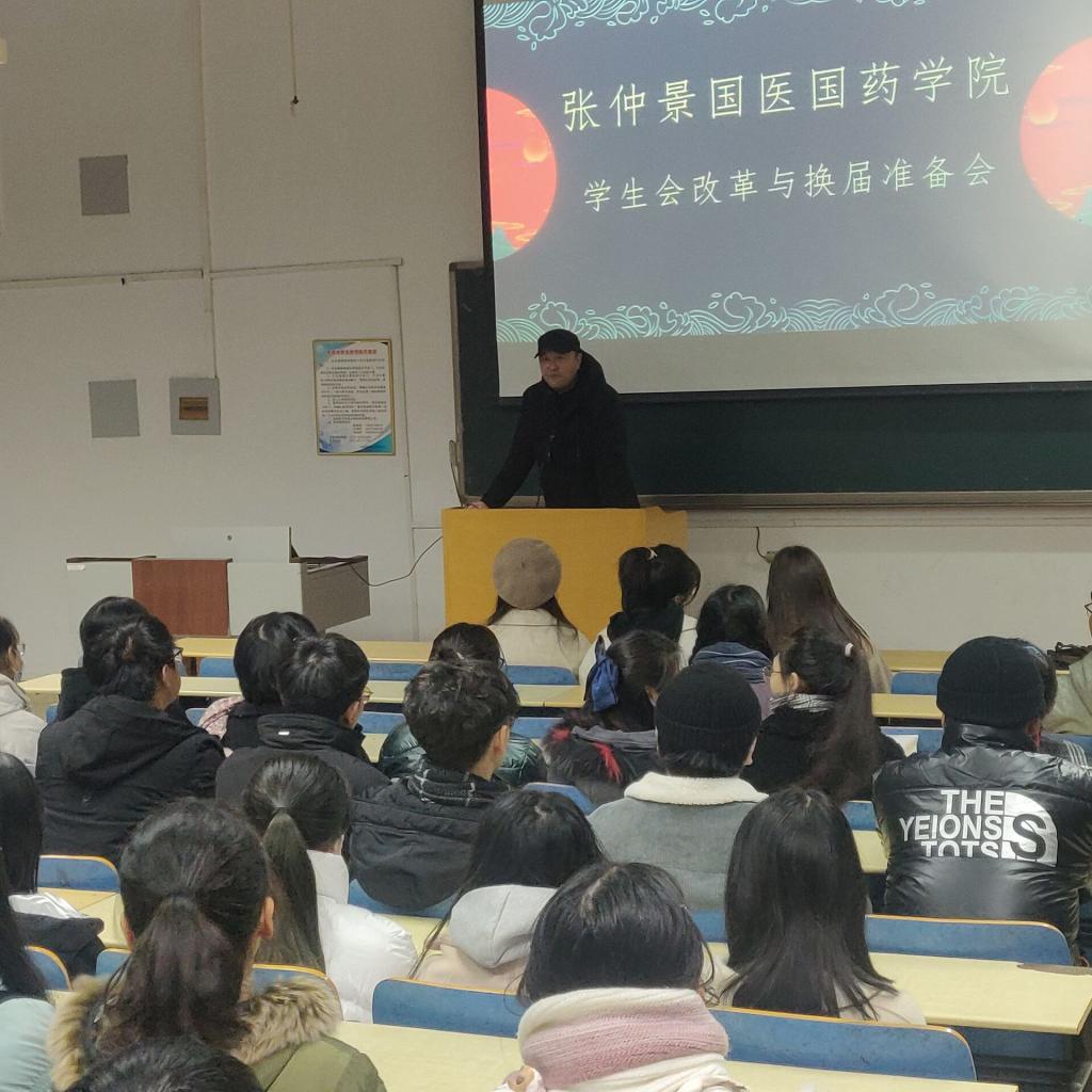 本网讯(学生记者/黄万里)为了响应学校团委对于各教学院学生会改革的指示要求,保证我院学生会组织的改革与换届工作顺利进行,11月23日,我院于14#202举行张仲景国医国药学院学生会改革与换届准备会。学工办主任王猛、学工办副主任王同斌出席会议,学生会全体成员参加会议。
