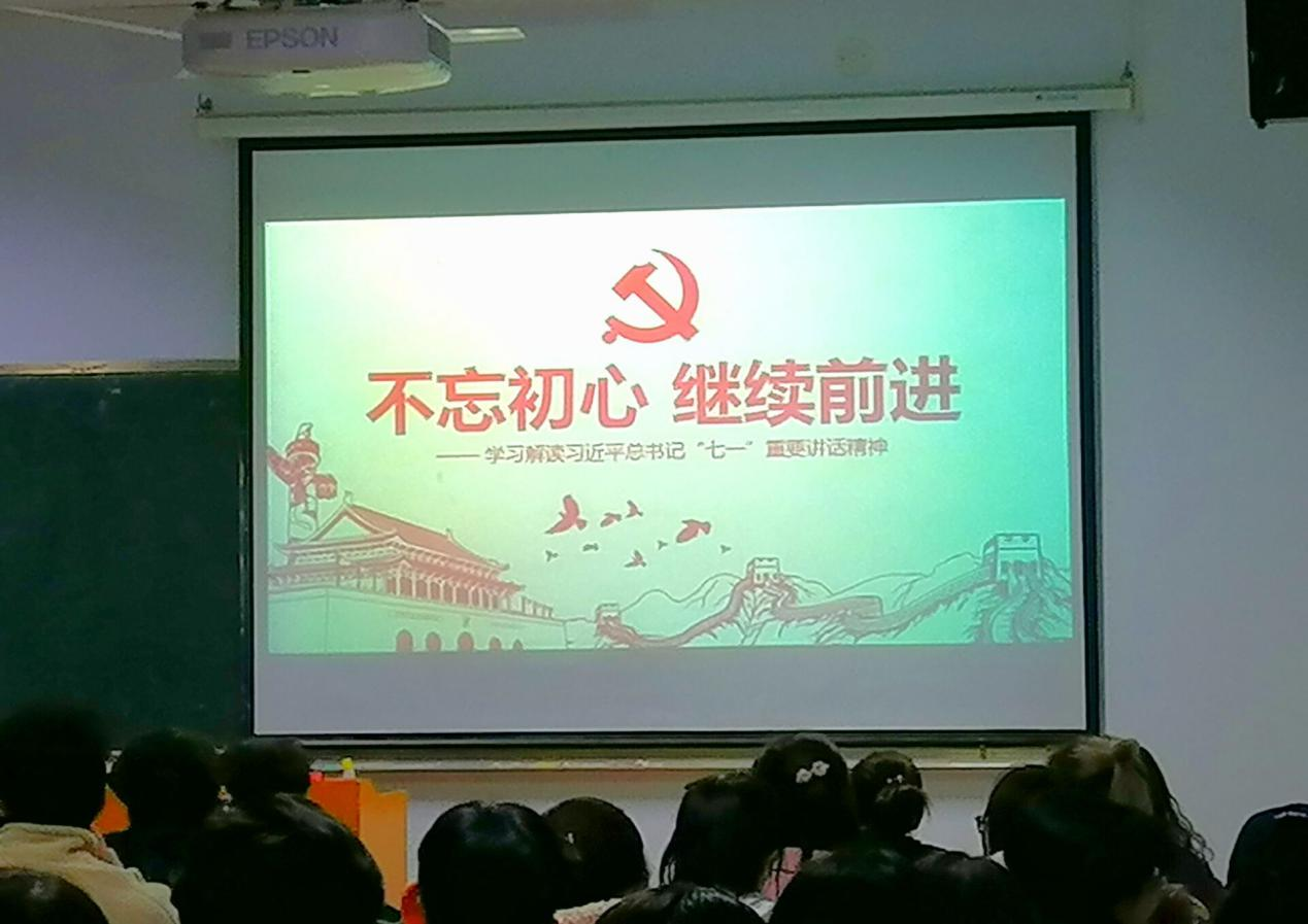 陈丽平结合自身学习及工作经历,围绕三个“伟大历史贡献”、三个“永不动摇”、四个“自信”等党的知识,在解读习近平总书记“七一”重要讲话精神的同时,强调全体学生应坚持“不忘初心、继续前进”。整堂课思路清晰,环节紧凑,重点突出。学生认真听讲,全神贯注,积极了解并学习党课知识。