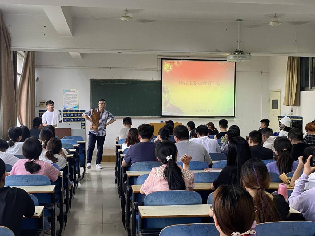 本网讯(特约记者/牛晨慧 学生记者/张鑫)为庆祝2021年中国共产党成立100周年,引导南阳理工学院21届毕业生党员发扬党的传统和优良作风,激发党员青年的爱国热情,激发南阳理工学院21届毕业生党员成才报国的使命感和责任感。5月30日,我院于11#512召开张仲景国医国药学院2021年毕业生党员教育大会,我院王同斌、王旭老师受邀上台讲话并对全体同学送上寄语。全体21届毕业生党员参加本次会议。