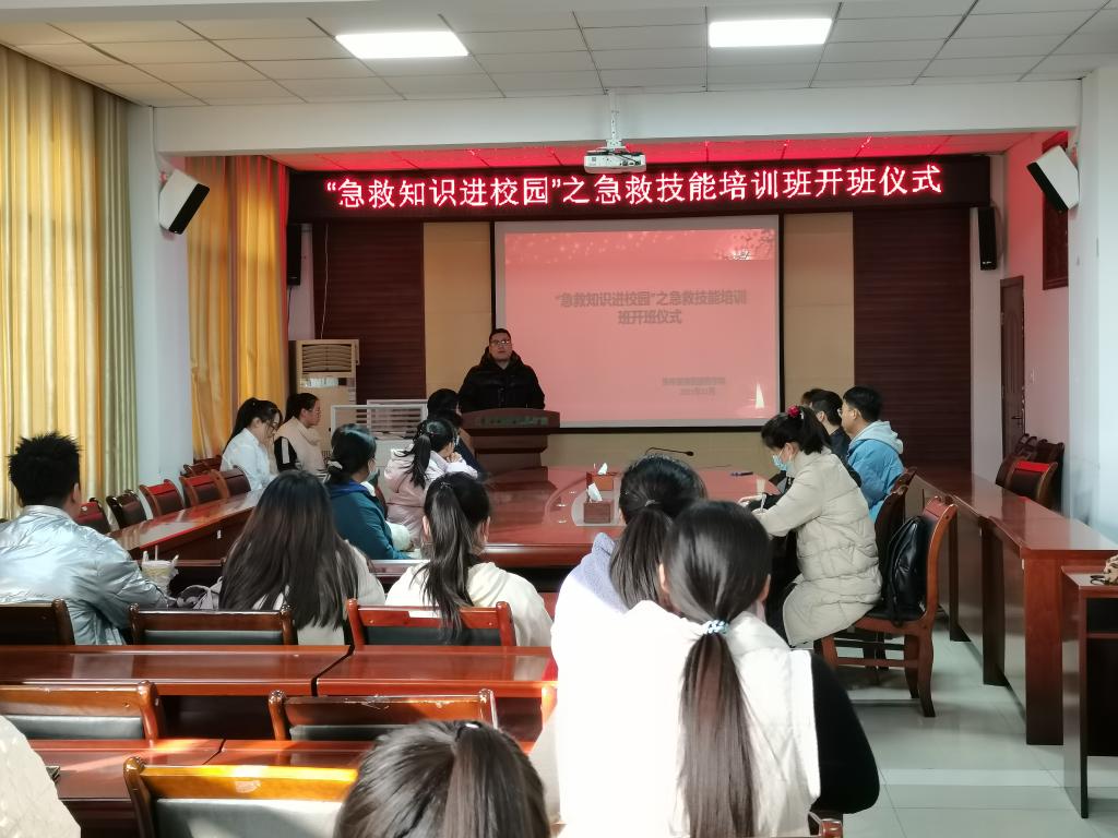 本网讯(特约记者/王同斌 学生记者/宋光玉)为了提高同学们的急救意识与现场急救能力,向公众普及救护知识,11月28日上午9点,张仲景国医国药学院举行“急救知识进校园”之急救技能培训班开班仪式,共有30名宿舍长代表参加本次活动。