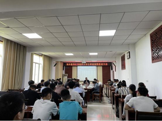 本网讯 (特约记者/刘征)为应对疫情常态化下大学生严峻的就业形势,助力我院2022届毕业生提升自身就业能力,帮助同学们尽早做好就业准备,2022年5月4日上午9:00,国医学院2022届毕业生职业发展教育大会于11号楼211成功举办,学院党委副书记岳伟国,学办主任王猛、各年级辅导员和2022届正在找工作的毕业生参加本次讲座。