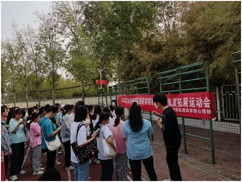 本网讯(学生记者/ 石军凯)为提高学生的心理素质,丰富学生的课余生活,培养同学们良好的体育道德和集体主义精神。10月1日上午,由我院学生会心理部主办的素质拓展运动会在西北校区田径场顺利举行。夏红梅老师出席活动并发表讲话,提醒同学们要时刻注意安全,遵循“友谊第一,比赛第二”的原则,赛出风格,比出水平。