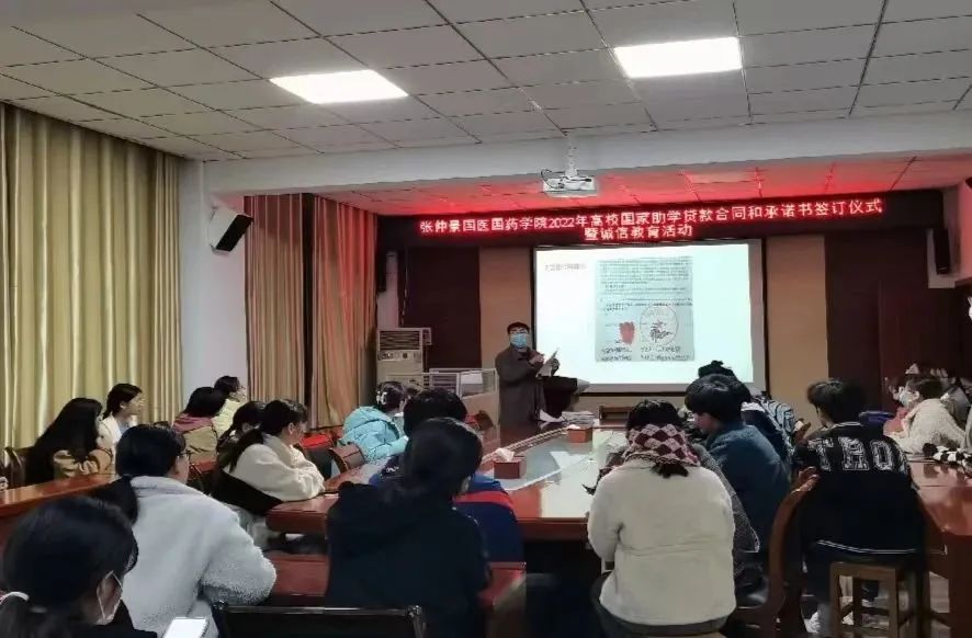 为了落实国家助学贷款政策,增强学生诚信意识、责任意识,11月15日,张仲景国医国药学院在11教2楼会议室举办了2022年度高校国家助学贷款合同和承诺书签字仪式暨诚信教育活动。