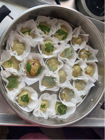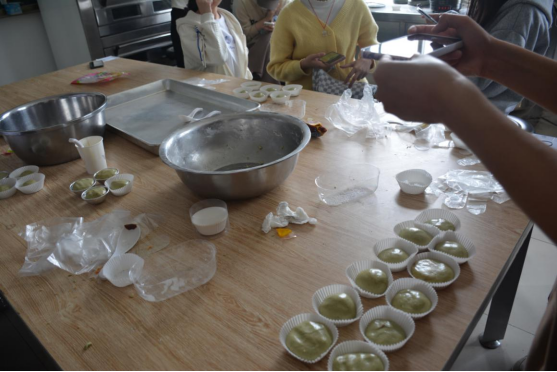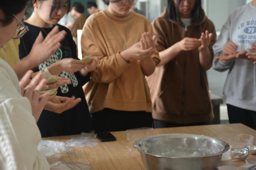活动现场,工作人员早早就在为开展制作青团活动做准备工作,煮艾草、打汁,空气中满是弥漫的艾香。组织者合理的分工使准备现场有序而高效,五十余名同学们参与了此次活动,按照分组相互协作,在工作人员的指导下揉面、配料、捏皮、包馅料,现场氛围热闹而温馨。