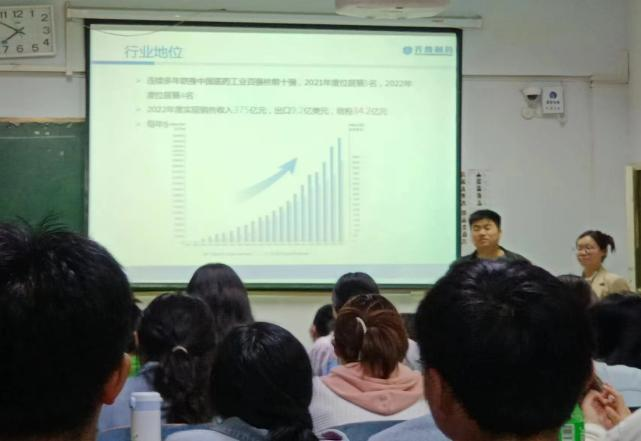 齐鲁集团工作人员介绍了齐鲁制药集团成长历史、初心理念、突出优势及未来发展方向,还介绍了企业荣誉,企业规模,企业文化,员工工作环境,员工培训体系和薪酬福利等。齐鲁制药集团有限公司是中国十大最具影响力的制药企业,企业负责人介绍到他们拥有高素质的研究队伍,专业高效的研发能力,规范的质量控制系统和完善的质量保证体系。在问答环节,同学们踊跃提问,负责人也对同学们关心的工作周期和工作福利等问题进行了详细的解答。