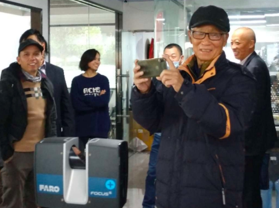 薛老很惊讶于非常前沿的高科技行业存在于校友企业当中,拍照留念。