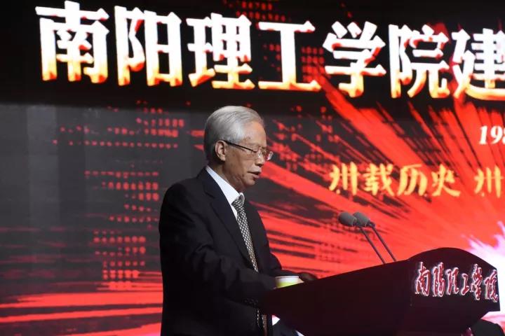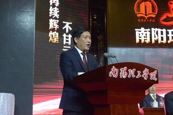 他指出,南阳理工学院三十年的辉煌业绩,充分体现了中国特色社会主义制度的优越性和文化自信力。南阳理工学院白手起家、从无到有、从小到大的发展历程和成功实践,凝结着各级历届党委、政府的关怀和支持,以及在京南阳籍老领导们的桑梓之情,铭刻了南阳理工人大无畏的艰苦创业创新精神,生动地宣示了有条件要办,没有条件创造条件也要办的雄心壮志。他希望, 进入新的历史阶段,实现新的奋斗目标,南阳理工要认真学习贯彻即将召开的党的十九大会议精神,认真领会习近平总书记的重要思想,同以习近平同志为核心的党中央保持高度一致,努力做好各项工作。要坚持有中国特色的社会主义办学方向,把立德树人作为中心环节,把思想政治工作贯穿教育教学全过程,实现全程育人,全方位育人。学校要不断提升人才培养质量,全面提高办学水平,建设特色学科专业,优化教师队伍结构,增强社会服务能力。要大力发扬艰苦奋斗和开拓创新精神,干在实处,走在前列,勇立潮头,谱写新的华章。