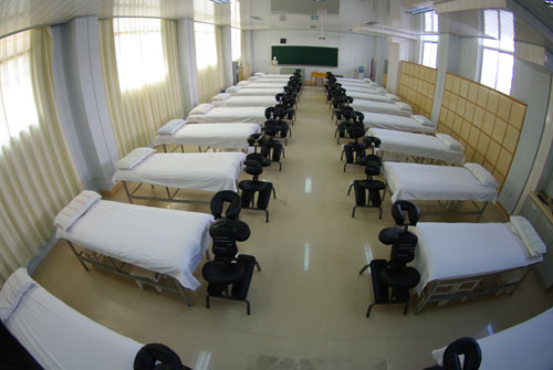 针灸推拿的综合实训中心,需要较大的空间能放下治疗床及相关模型,并能容纳足够的学生进行操作。所以总体要求是宽敞。