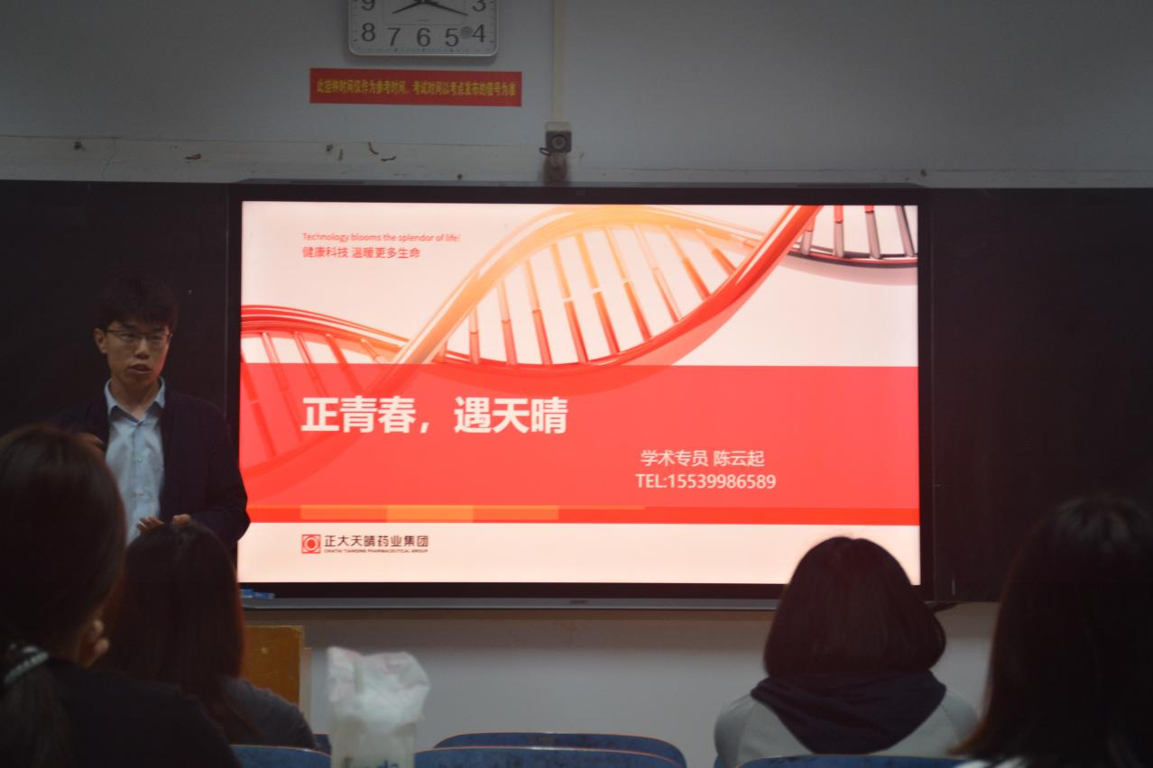 本网讯(特约记者/刘征 学生记者/张玉璐)为进一步提升学生能力,使学生全面面向社会。9月25日晚8点,正大天晴2026届实习生招聘宣讲会在11518教室如期举行。