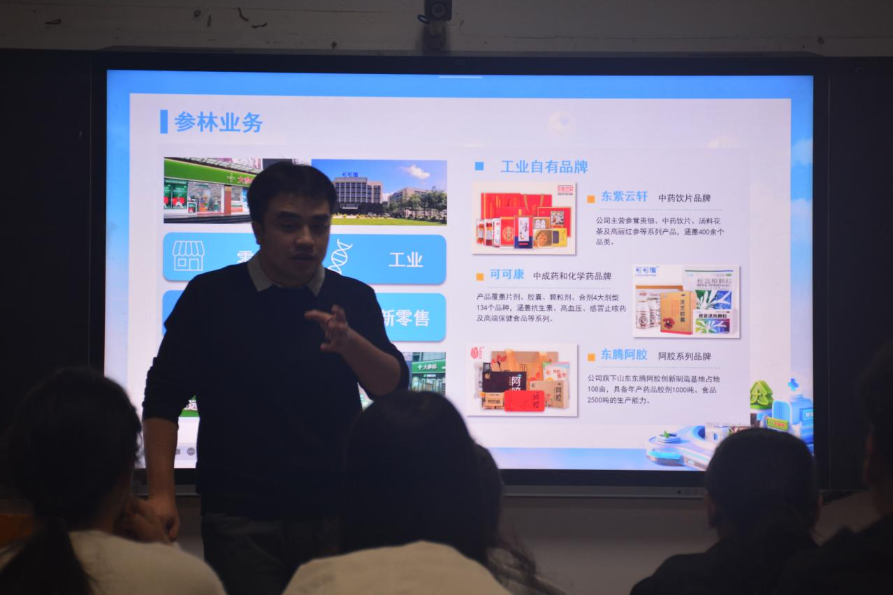 本网讯(特约记者/刘征 学生记者/张玉璐)为进一步提升学生能力,更好让学生全面面向社会。10月16日,大叁林医药集团招聘宣讲会在11518教室如期举行。