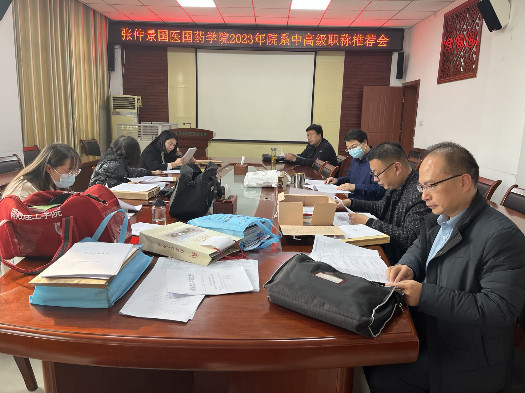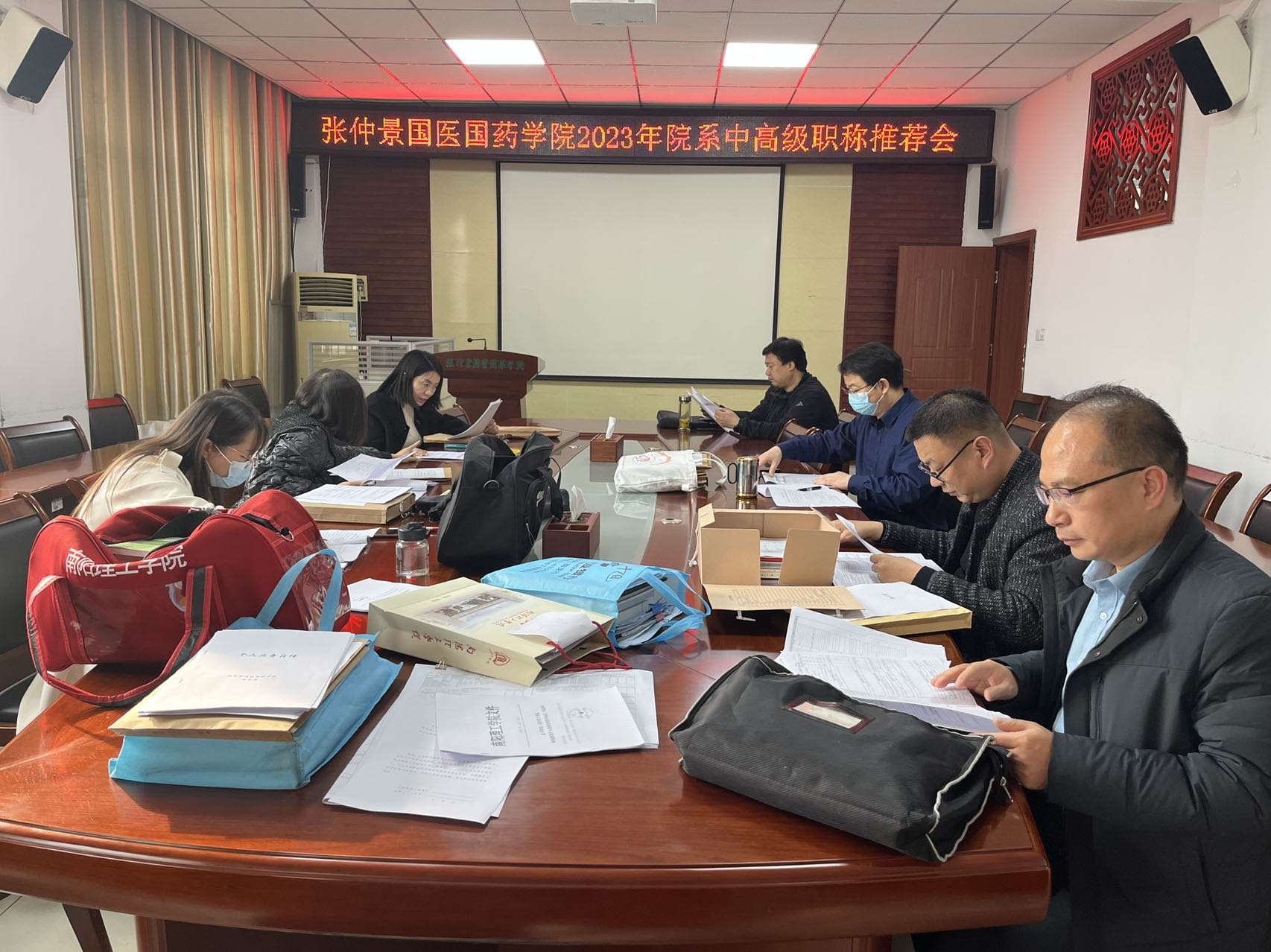 根据河南省人力资源和社会保障厅《关于 2023 年度全省职称评审工作有关问题的通知》(豫人社办〔2023〕111 号)、《关于进一步加强高校职称自主评审和监管服务有关工作的通知》(豫人社办〔2021〕91 号)和南阳市职称改革领导小组办公室《关于 2023 年度南阳市职称申报评聘工作有关问题的通知》(宛职改办〔2023〕27 号)要求,在2023年11月22日南阳理工学院张仲景国医国药学院召开院系中高级职称推荐会,此次会议由学院各位领导共同参与。