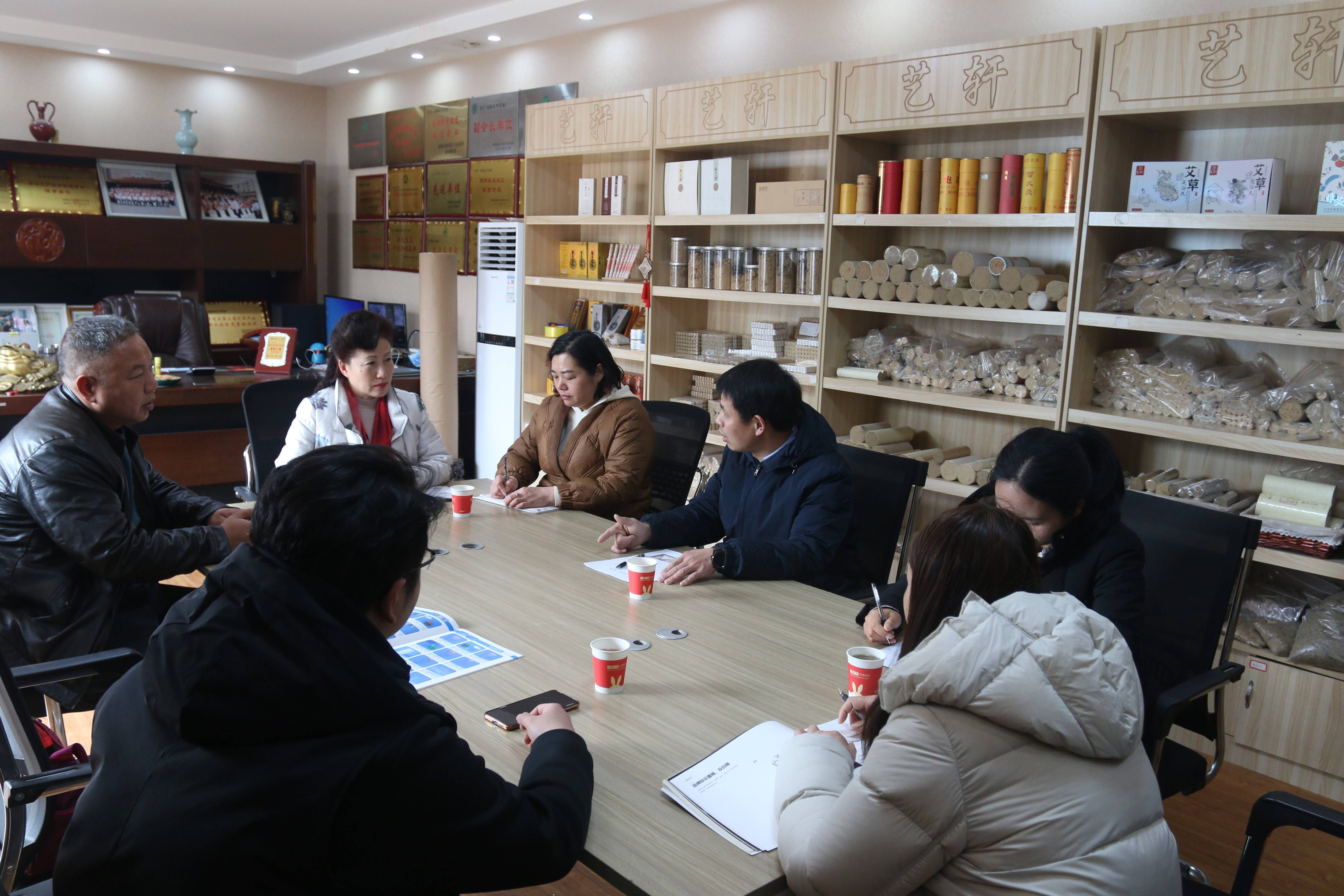 2月13日,雨后初晴,卧龙区艾草协会秘书长杨爱英等陪同南阳理工学院黄显章教授团队一行到卧龙区东升艾绒厂调研考察,并洽谈合作事宜。