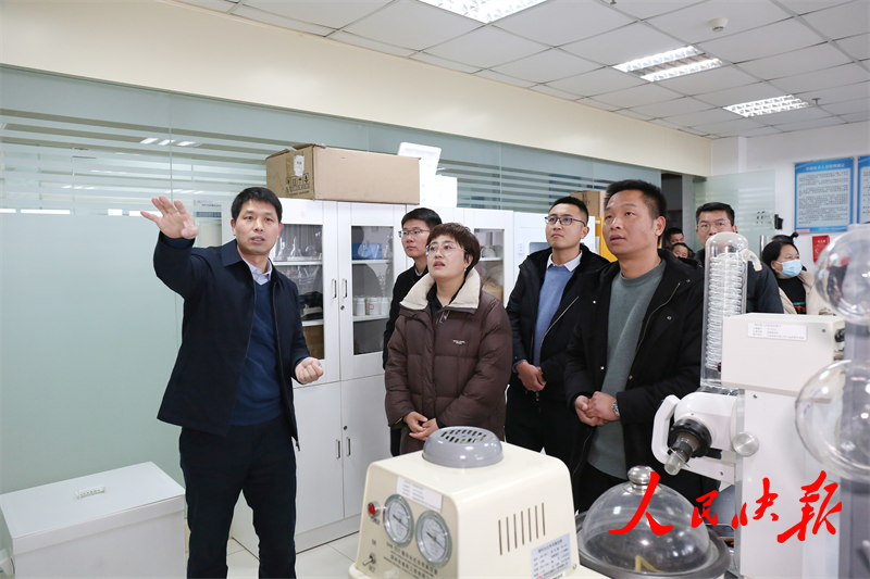 在南阳理工学院张仲景国医国药学院教授黄显章向考察团介绍南阳“八大宛药”的产业规模,并对实验室研究的艾叶种类和南北区域的特性进行详细的介绍。