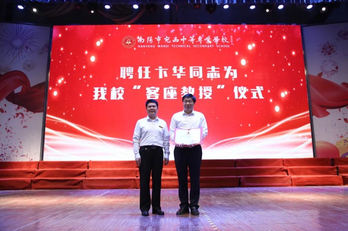 五月初夏,生机盎然。5月19日上午,我校在大礼堂隆重举行“客座教授”授聘仪式,荣幸聘请南阳理工学院张仲景国医国药学院院长卞华教授为我校“客座教授”,在八方宾朋和全体师生的见证下,校党委书记丁亚军为卞华教授颁发聘书。