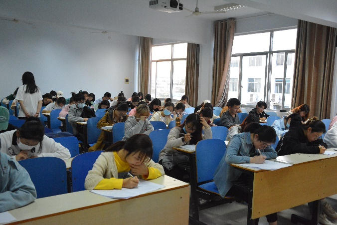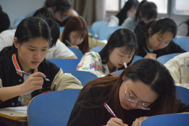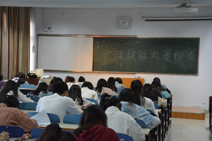 本次初赛以考查护理专业技能知识为主,采用笔试形式。在比赛开始之前,每一位学生都尽力翻看相关资料,认真复习课本内容,希望能够进入决赛。晚上七时,考试正式开始,考场秩序井然,考生正襟危坐,当拿到卷子之后,考生们开始争分夺秒的答题。现场秩序良好,气氛紧张严肃。
